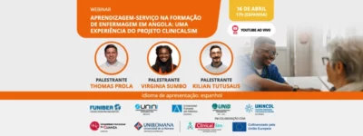 A Fundação Universitária Iberoamericana (FUNIBER) organizará, em 16 de abril, às 17h (horário da Espanha), o webinar em espanhol “Aprendizagem-serviço na formação em enfermagem em Angola: uma experiência do projeto CLINICALSIM”, ministrado por Thomas Prola, Virginia Sumbo e Kilian Tutusaus. Ler mais